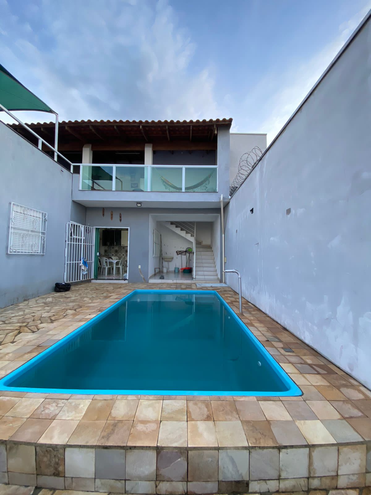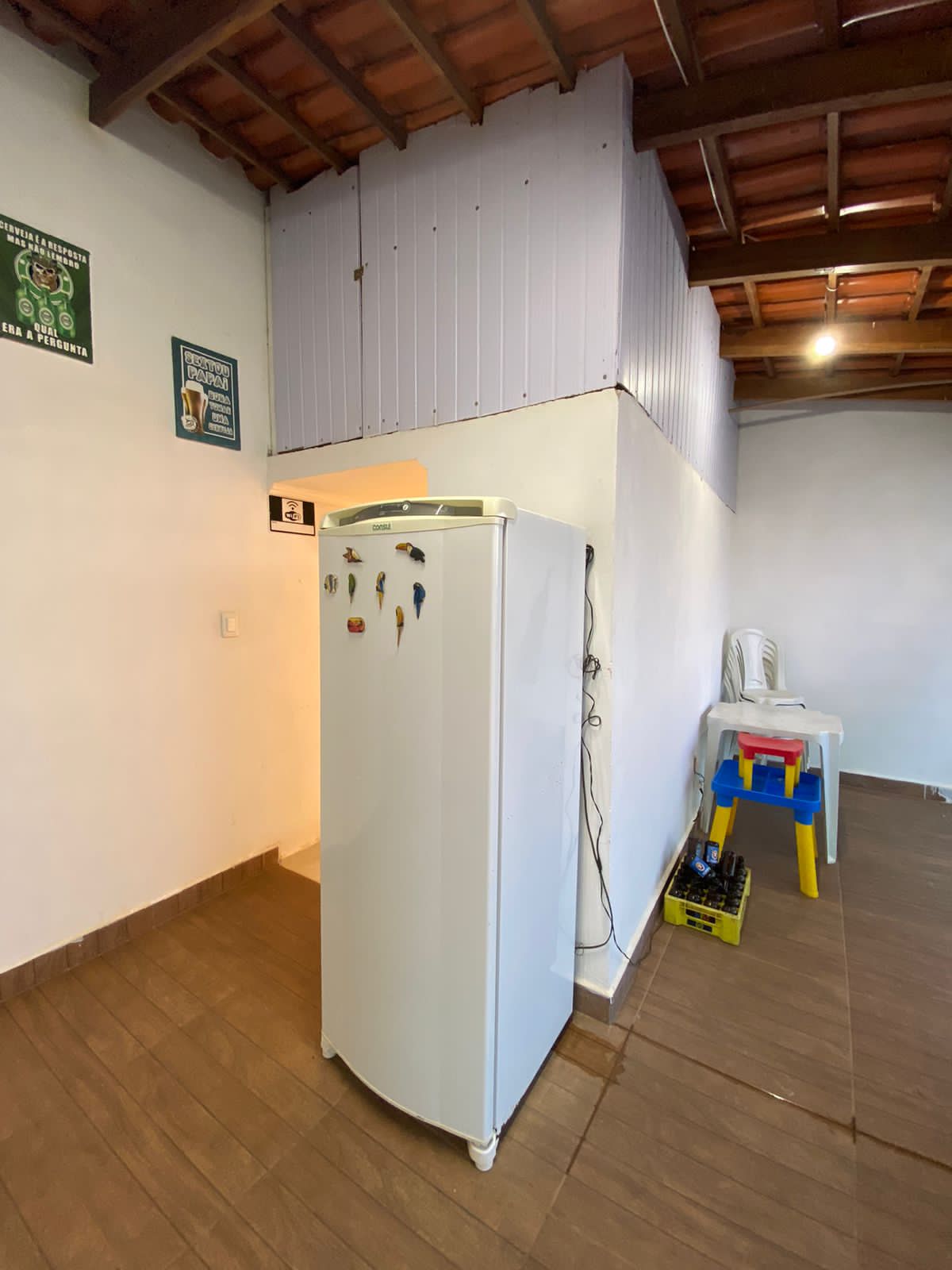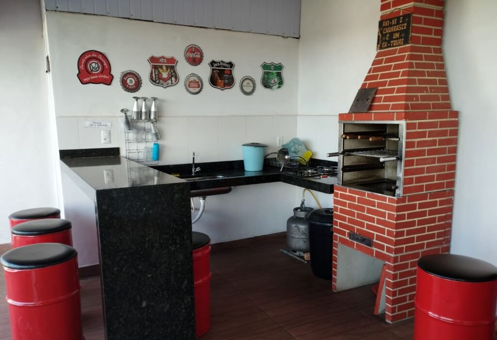 Piscina com LED e prainha, Chuveirão, Geladeira, Caixa Térmica de 120 Litros, Fogão Cooktop 2 bocas, Churrasqueira,1 Banheiro, 3 mesas e 13 cadeiras de plástico, 1 mesa, 1 banco de madeira 3 lugares e 6 cadeiras de tambores, WIFI.